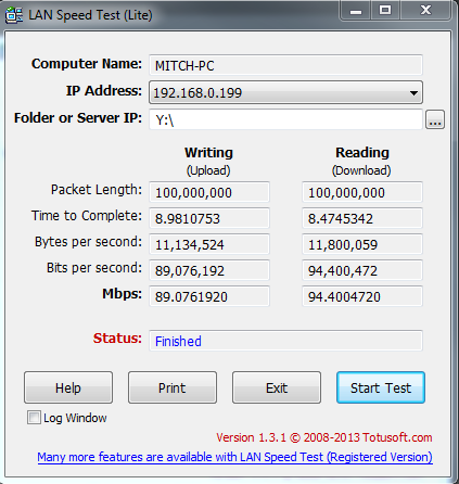 Ik heb met LAN Speedtest light van Totusoft getest en er was een groot verschil of ik naar mijn C schrijf teste of naar de Z (De server)
