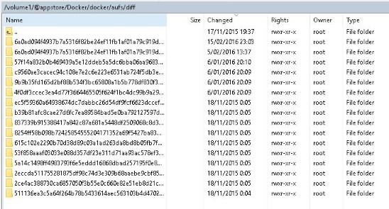 • Ga naar "/volume1/@appstore/Docker/docker/aufs/diff" en sorteer dan op 'Changed'.