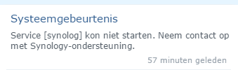 Service [synolog] kon niet starten. Neem contact op met Synology-ondersteuning.