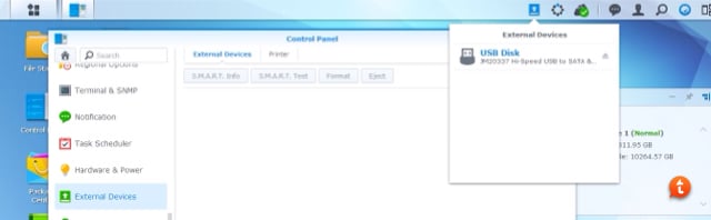 Extern aangesloten SATA disk op USB poort wordt niet weergegeven op DS412+(DSM5)
