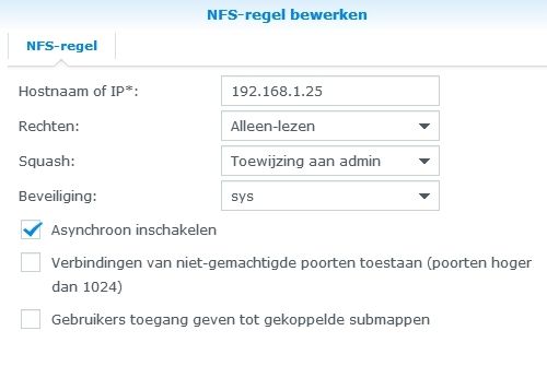 Een Dune B1 krijgt via NFS geen toegang tot mijn Synology