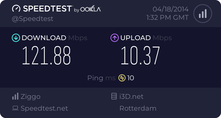 Ik heb thuis een abonnement van UPC, 120 mbit down 10 mbit upload. Aan de modem heb ik een Asus RT-N66U, en daarop een Synology DS213 (fw 5.0-4458 update 2) met CAT6 kabel. Voor het downloaden gebruik ik NZBget (anders had ik het hier niet gepost ;)).