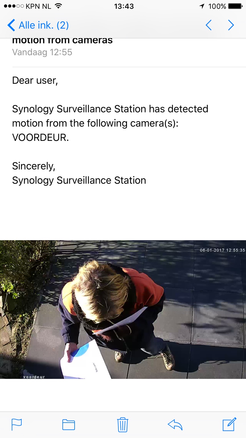 Ja dat werkt wel @Birdy die IR op dag of nachtmodus zetten. Maar het netwerk gedeelte . Achja het werkt zo, alles via de synology snapshot push service per email.