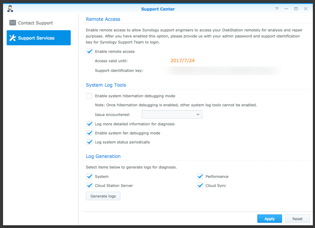 ✔ 1. Please provide the Support Identification Key in Support Center to us and enable remote access.