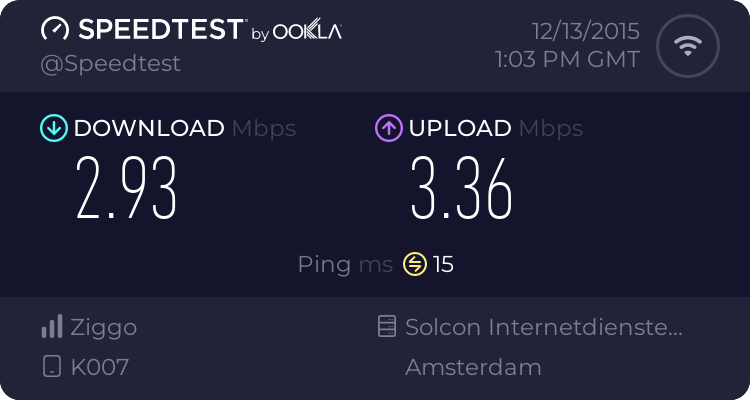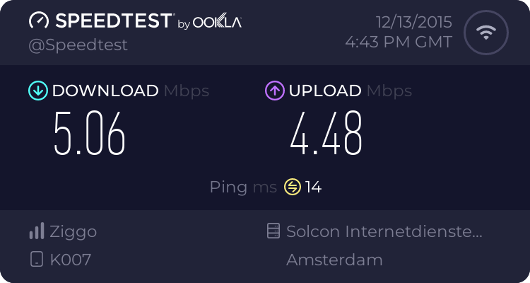 De speedtest is overigens uitgevoerd met een Asus ME572C tablet met android 5.0.1 er op. Ik wil ook nog eens testen met een PC of laptop om te kijken of het dan anders (lees: beter) wordt.