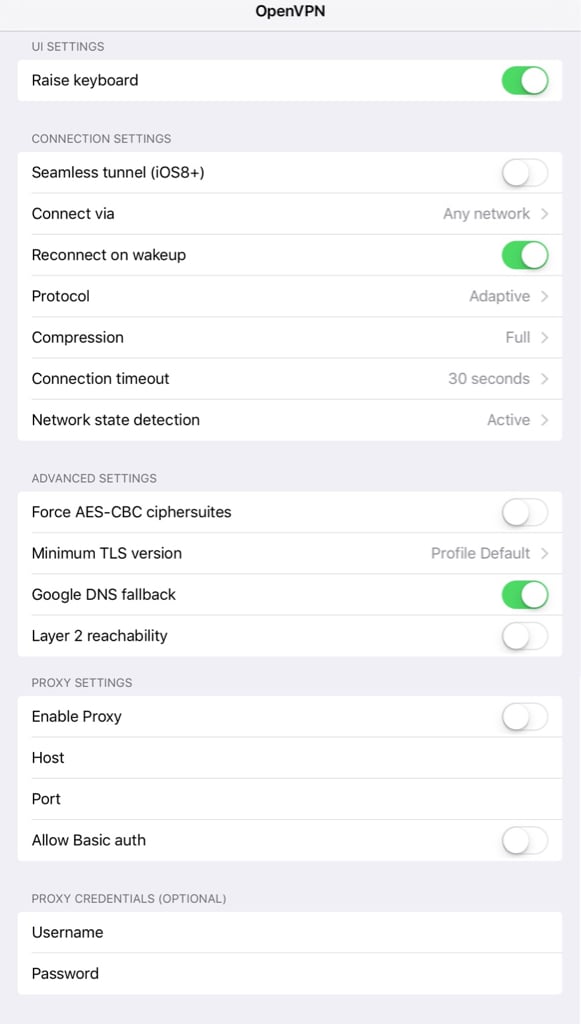 In windows vind ik de instelling niet terug in het OpenVPN programma. Op iOS kan ik volgende instellingen, maar zie niet waar ik de poort kan wijzigen in de app...