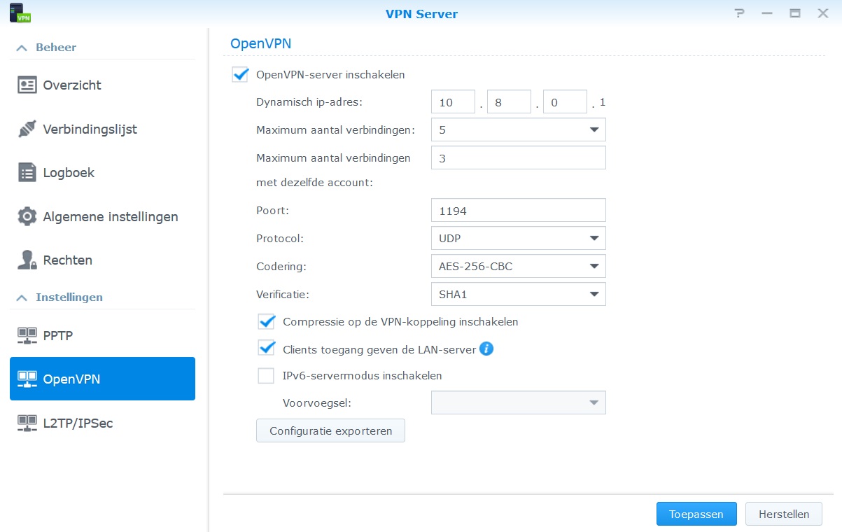 Zowel OpenVPN als L2TP problemen met NAS DS216se